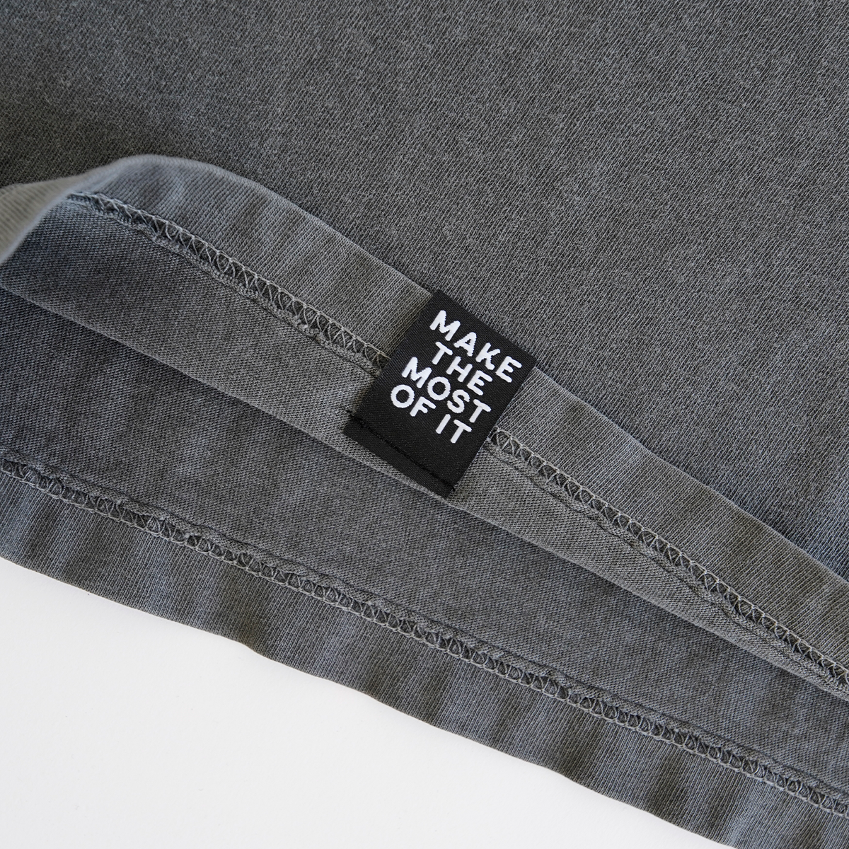 Woven labels: “MAKE THE MOST OF IT” hem tag + Salvage to Scenic branded tag